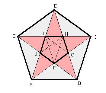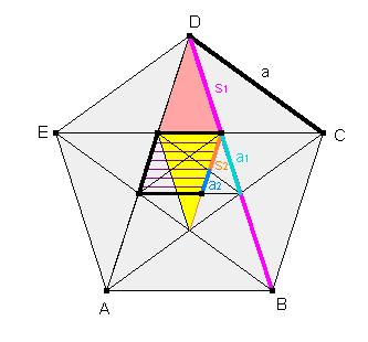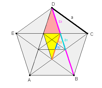 Bezeichnet man die Seitelänge des äußeren Fünfeckes mit a, die des